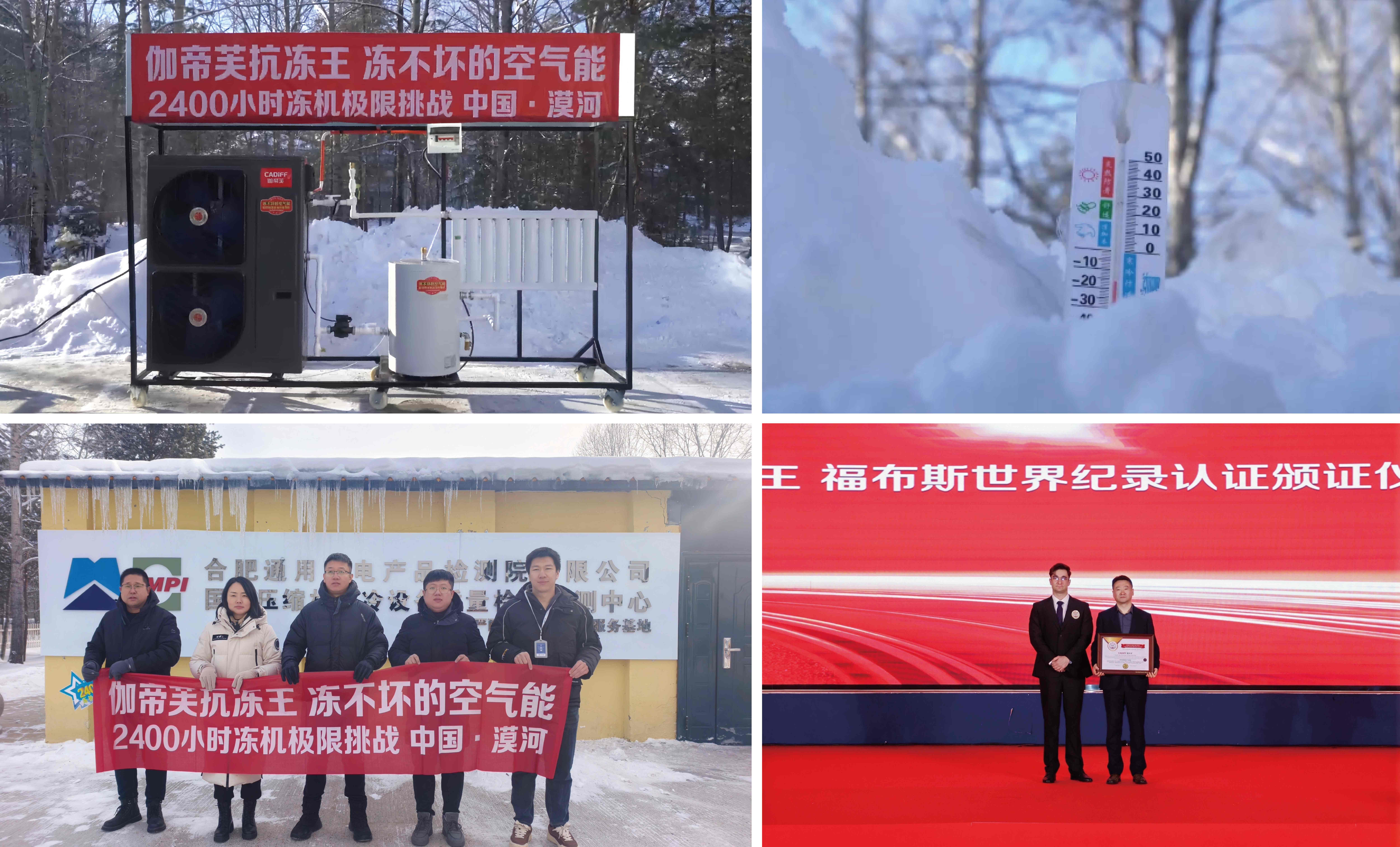 Cadiff Co., Ltd.’s “FrostMaster” air-source heat pump underwent a 2,568-hour extreme freeze test at the Hefei General Electromechanical Product Testing Institute in Mohe, China, from November 11, 2025, to February 27, 2026.